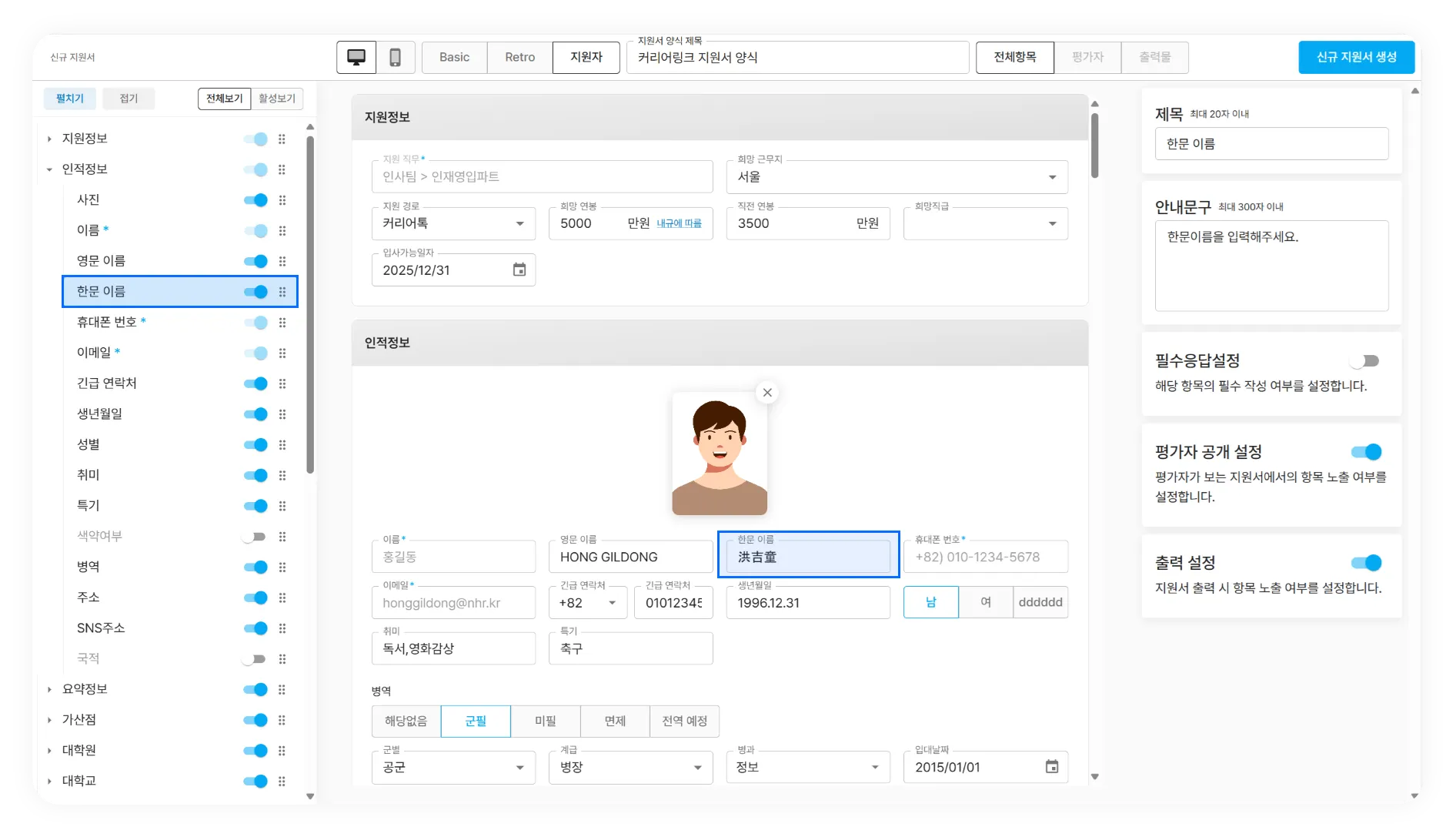 지원서 양식 대규모 업데이트