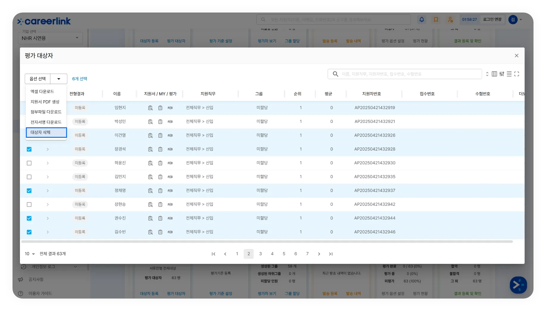 전형관리 내 평가대상자 삭제 기능