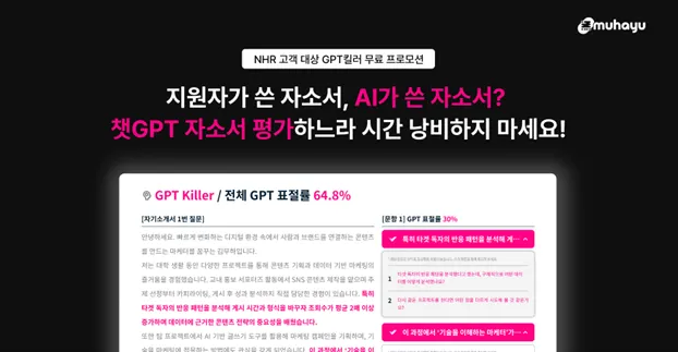 국내 유일, AI 자기소개서 탐지 도구 GPT킬러 무료 1회 이용