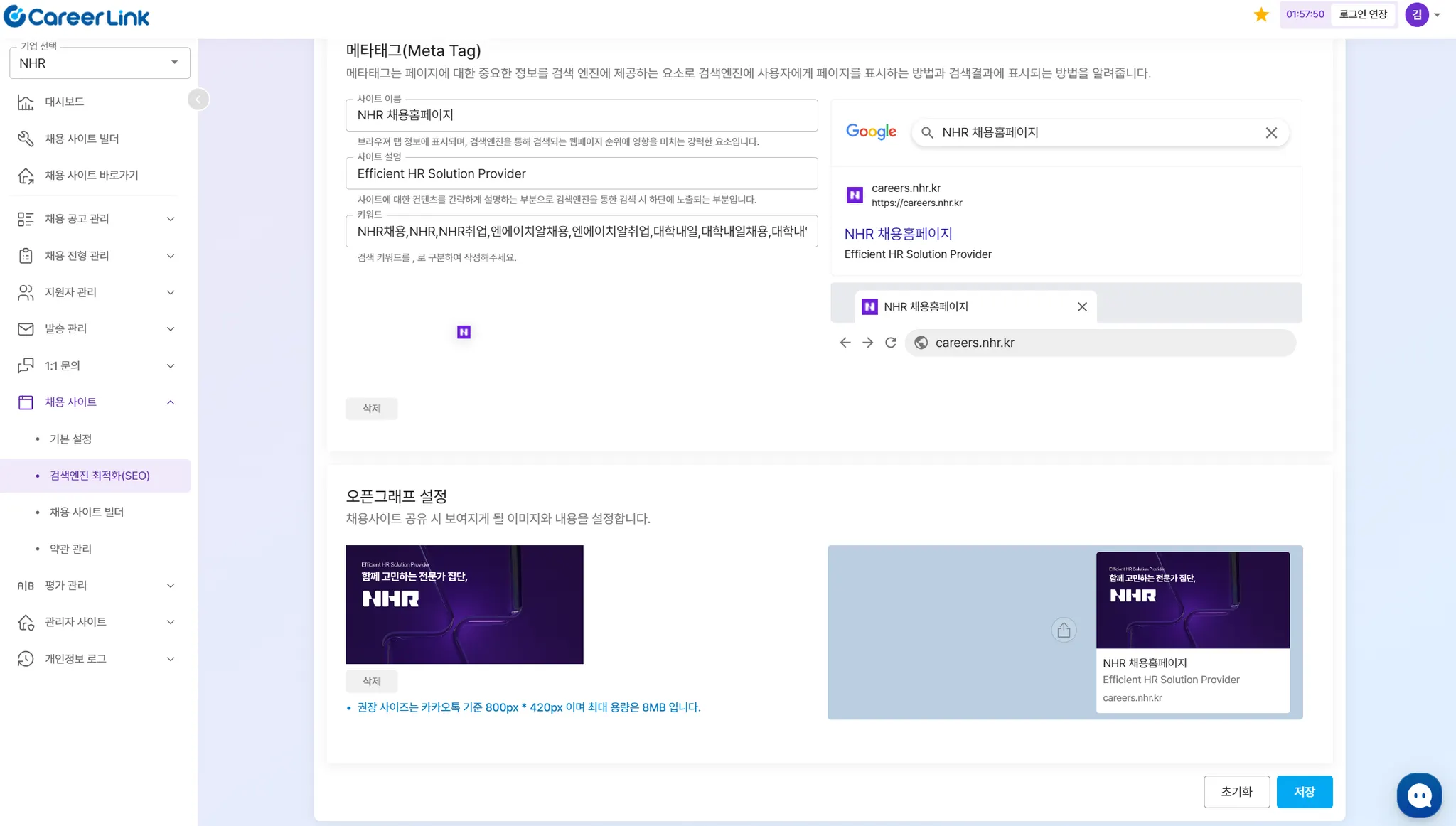 커리어링크 관리자 페이지 로그인 -> 채용 사이트 -> 검색엔진 최적화(SEO)