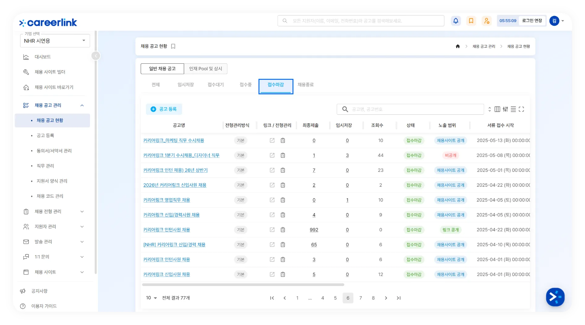채용 공고 현황의 ‘공고종료’ 명칭 변경