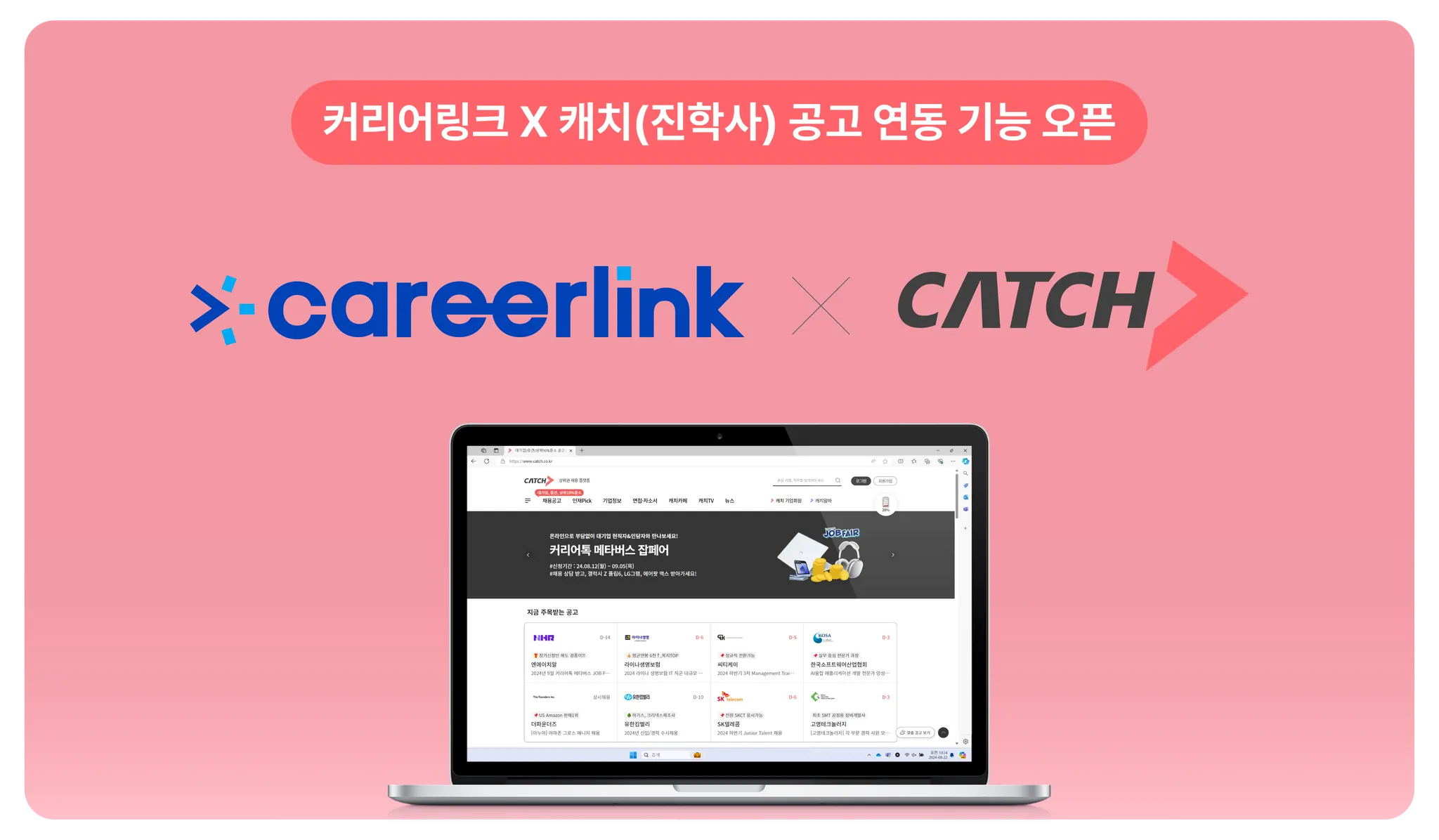 캐치와의 공고 연동 서비스를 오픈하여 커리어링크에서 게재한 공고를 캐치의 채용공고 페이지에 올리실 수 있습니다.