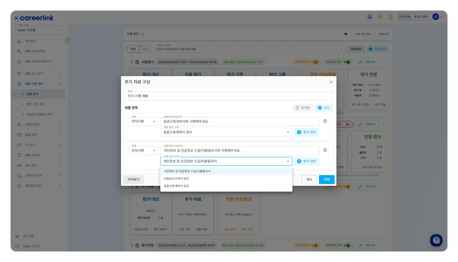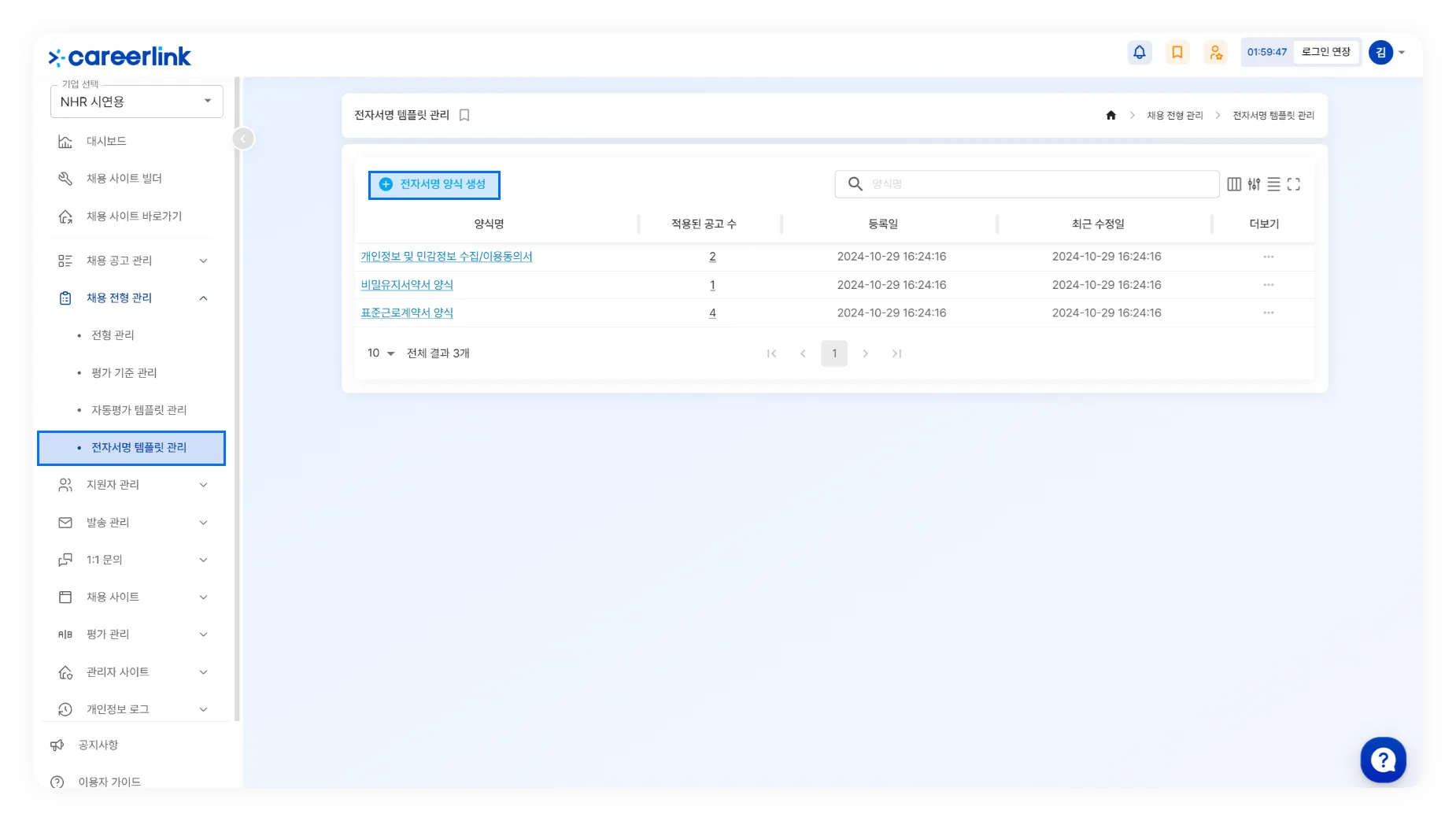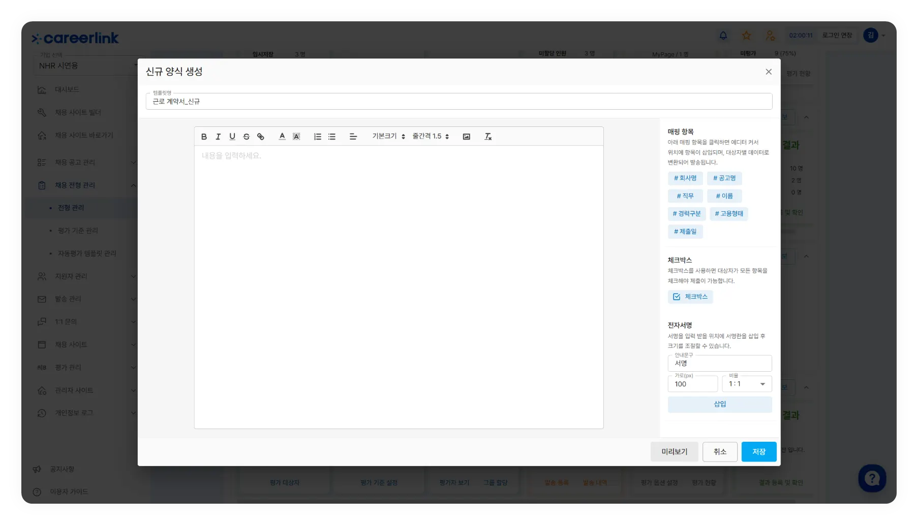 근로계약서/동의서 등 기존에 오프라인으로 관리하던 서류 양식을 커리어링크에 등록하여,