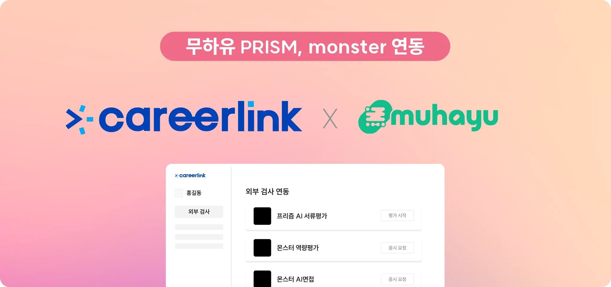 커리어링크 내에 AI 서류 평가 서비스인 프리즘과 AI 면접 서비스인 몬스터 연동 기능이 추가되었습니다. 커리어링크에 제출된 지원서를 프리즘으로 연동시켜 자동 AI 서류평가를 진행할 수 있고, 몬스터 연동을 통해 지원자들을 대상으로 AI 면접을 운영하실 수 있습니다.