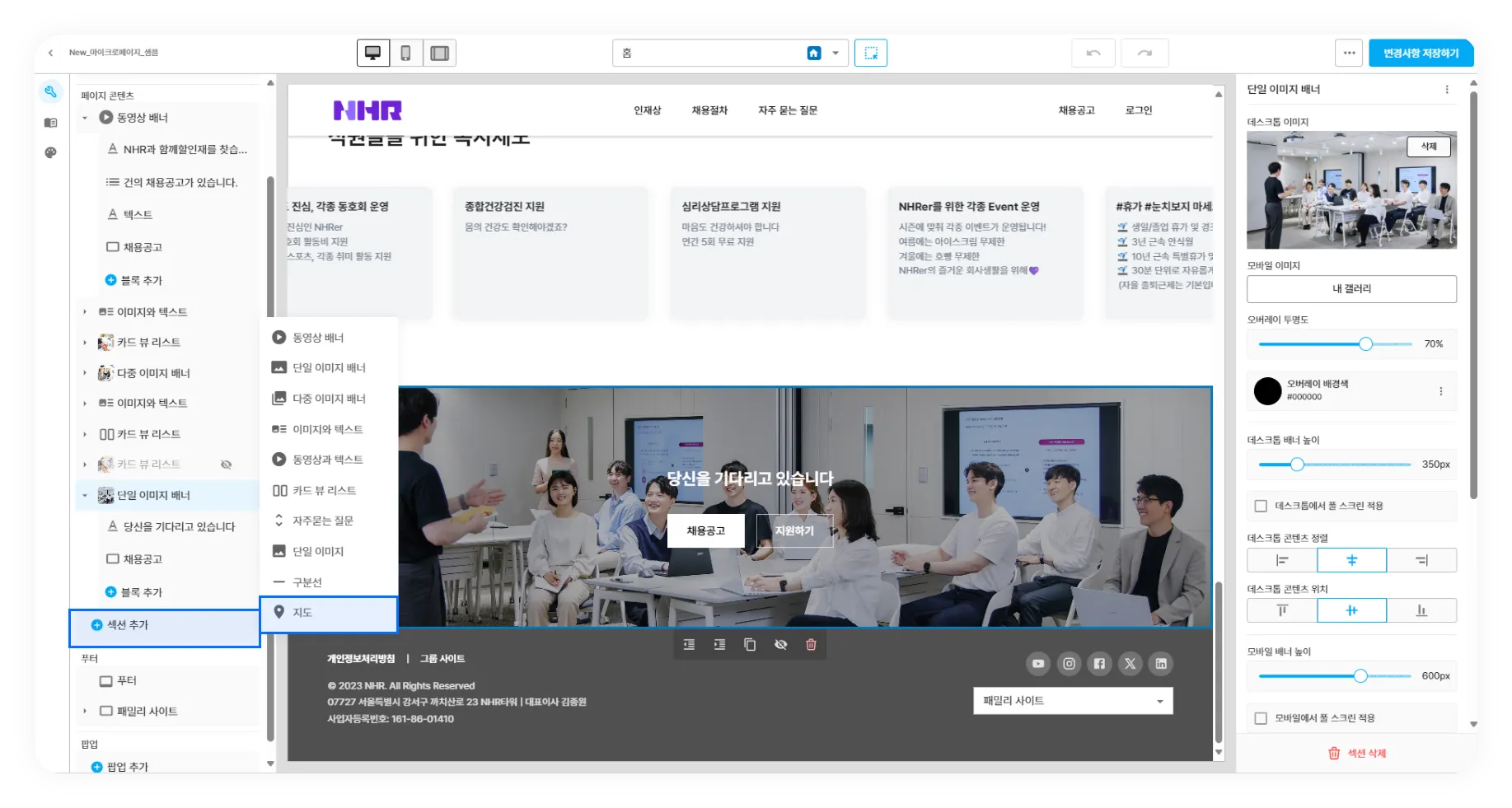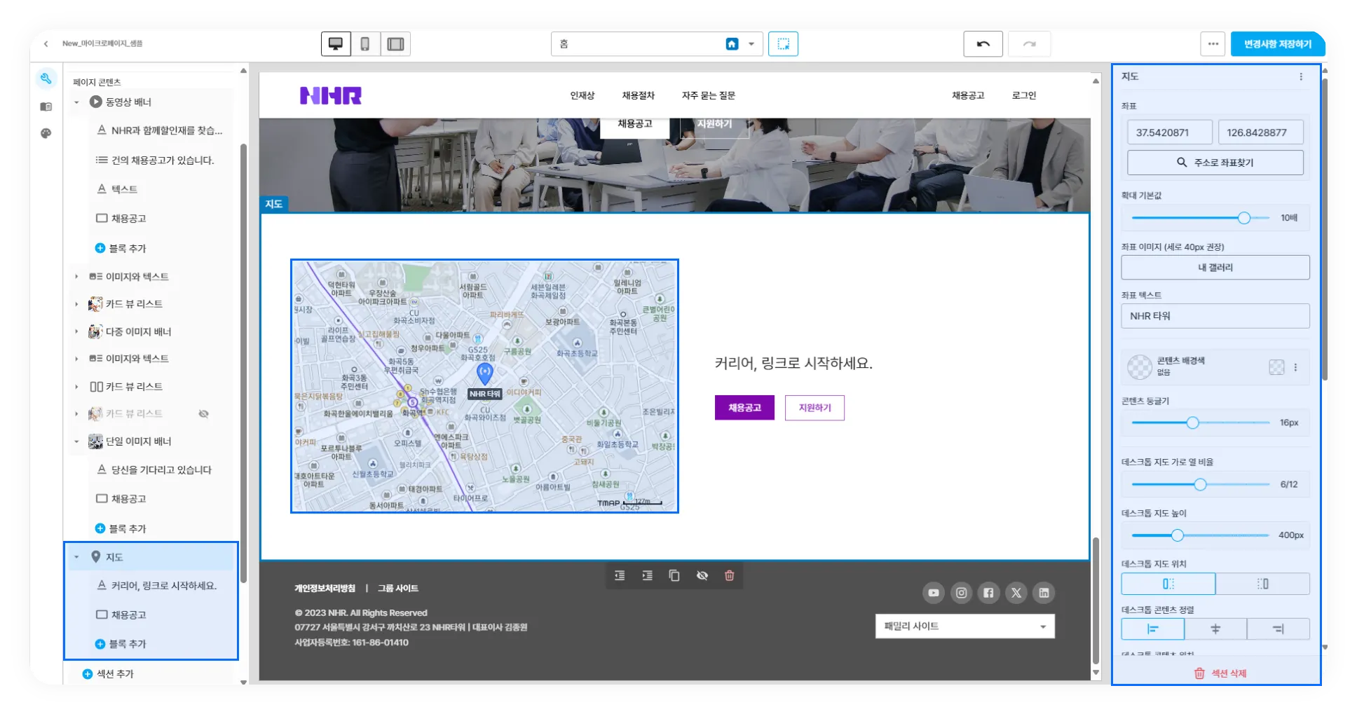 사이트 빌더 내 지도 항목 추가