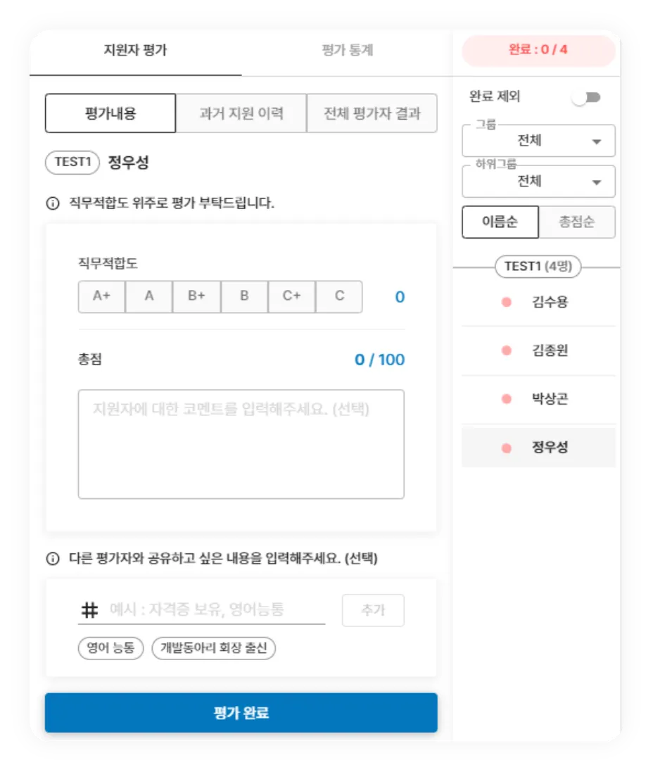 평가자 화면에서는 아래와 같이 보여지게 됩니다.