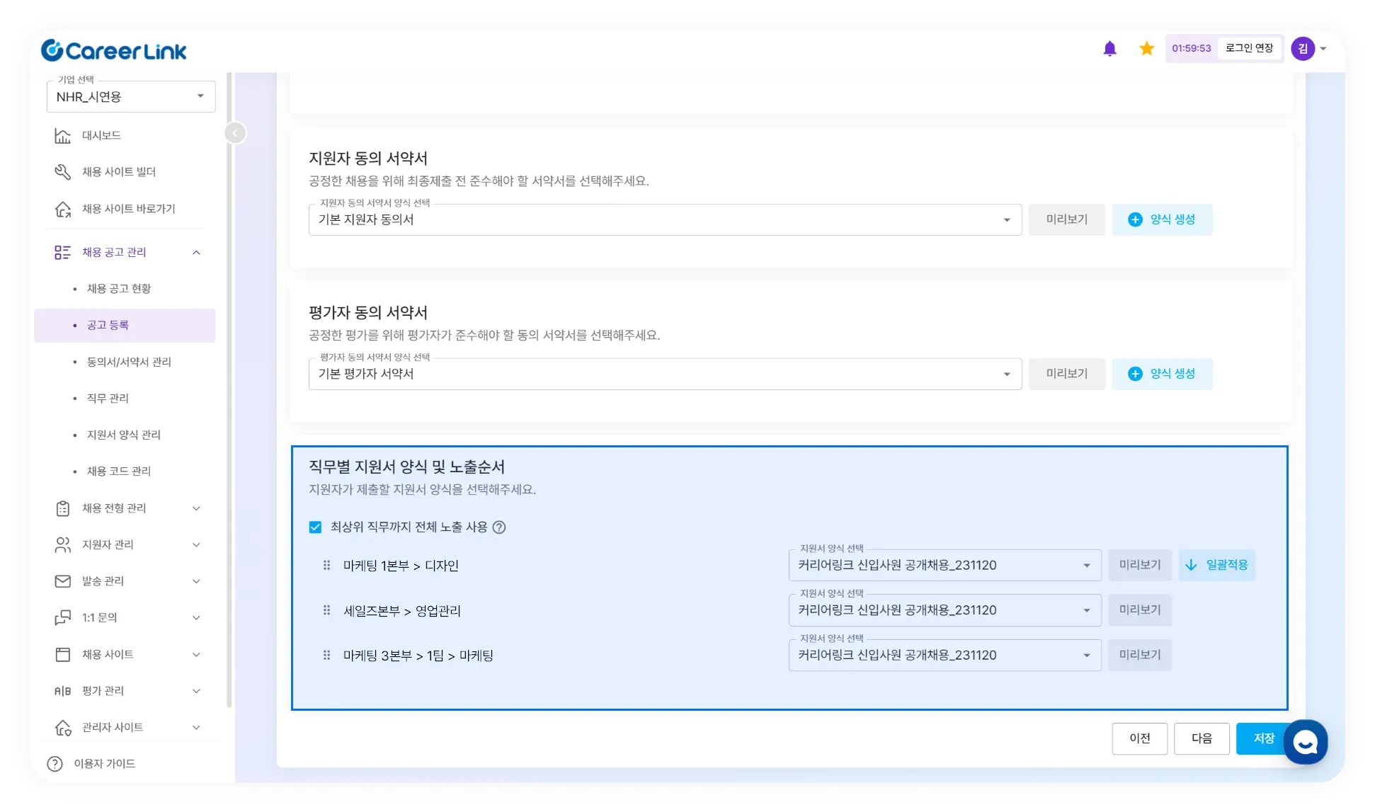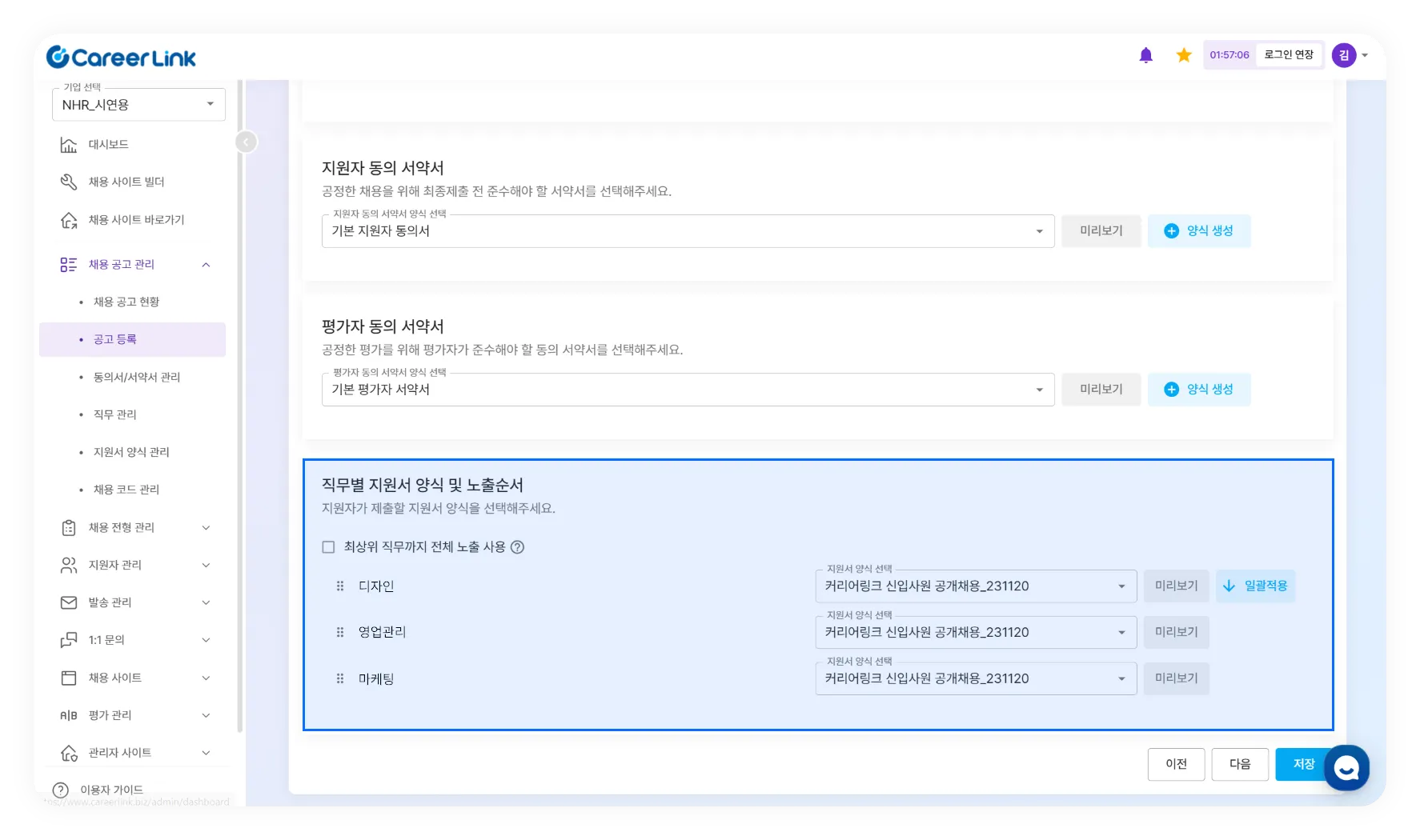 공고 등록 시, 최상위 직무 노출 및 노출 순서 변경 기능