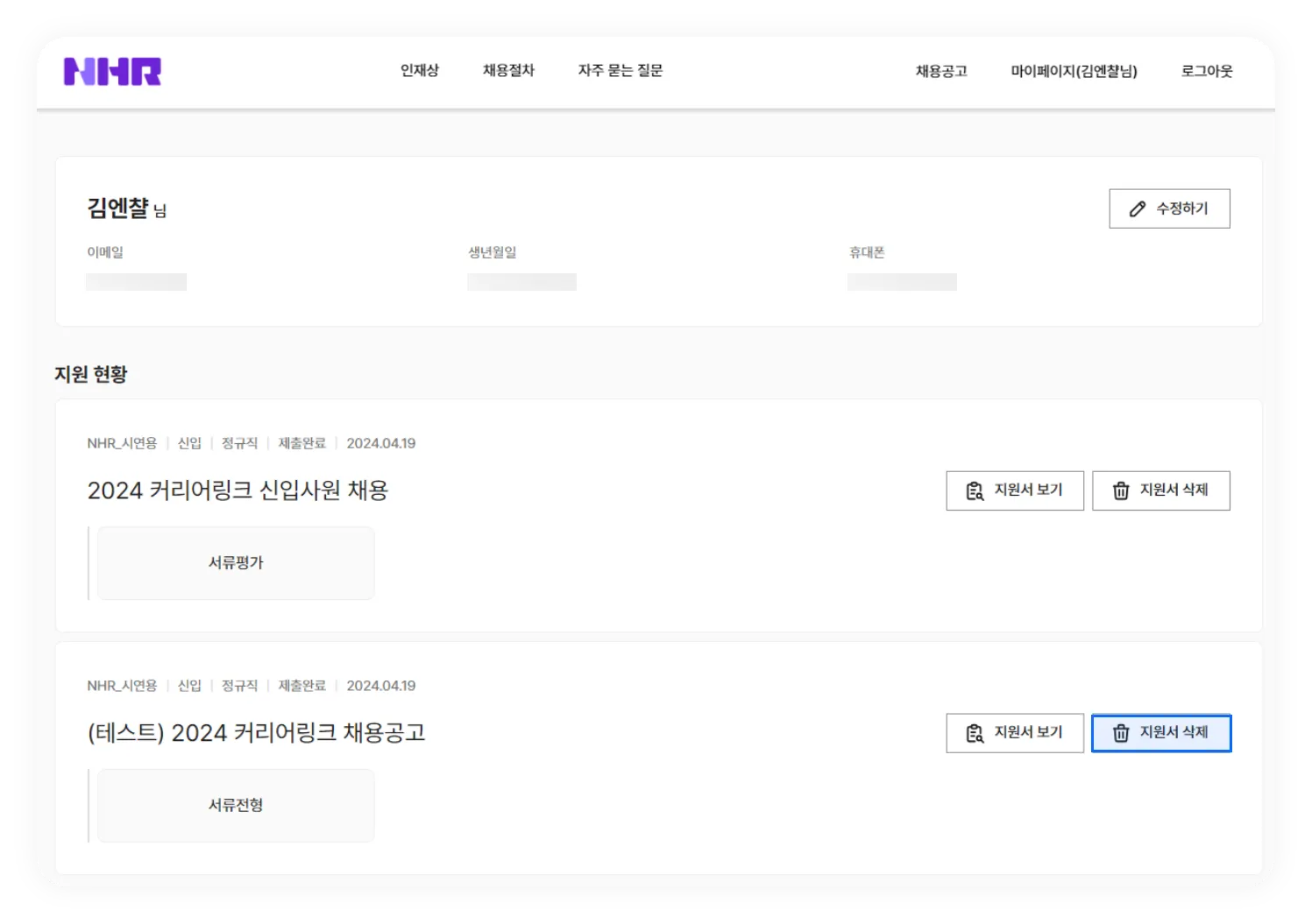 지원자가 본인이 작성한 지원서를 삭제할 경우, 삭제가 완료되었다는 내용의 Email/SMS가 지원자에게 발송됩니다. Email/SMS 발송 로그 기록을 통해 관리자는 지원자의 지원서 삭제 여부를 조금 더 편하게 관리하실 수 있습니다.